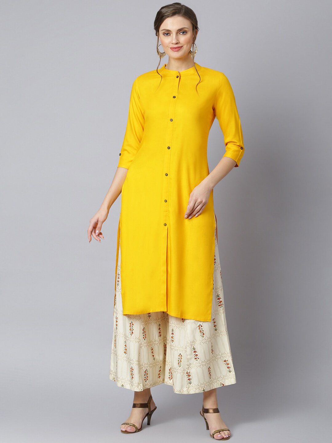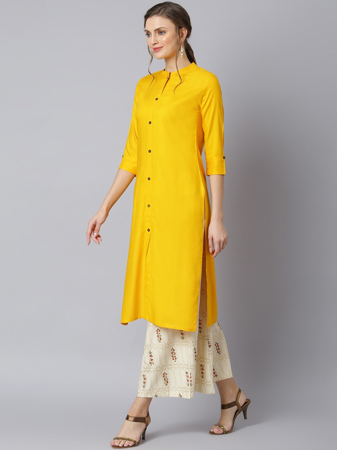 Khushal K Women Yellow Floral Rayon Kurta with Palazzos Product Details Yellow solid Kurta with Palazzos Kurta design: Floral solid Straigh...
