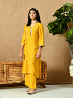 Myshka Kids Girls Calf length Embellished Kurta Set Mustard Color
