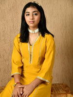 Myshka Kids Girls Calf length Embellished Kurta Set Mustard Color - 7-8Y