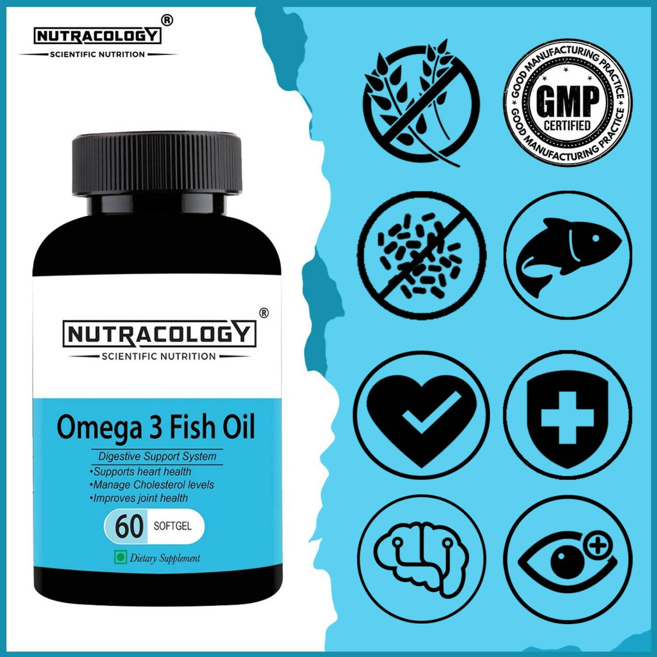 Nutracology Omega 3 Fish Oil 1000mg Capsules with Fish oil EPA + DHA Enriched SofgelsAbout the item: Omega 3 Fish Oil is sourced from cold water fi...