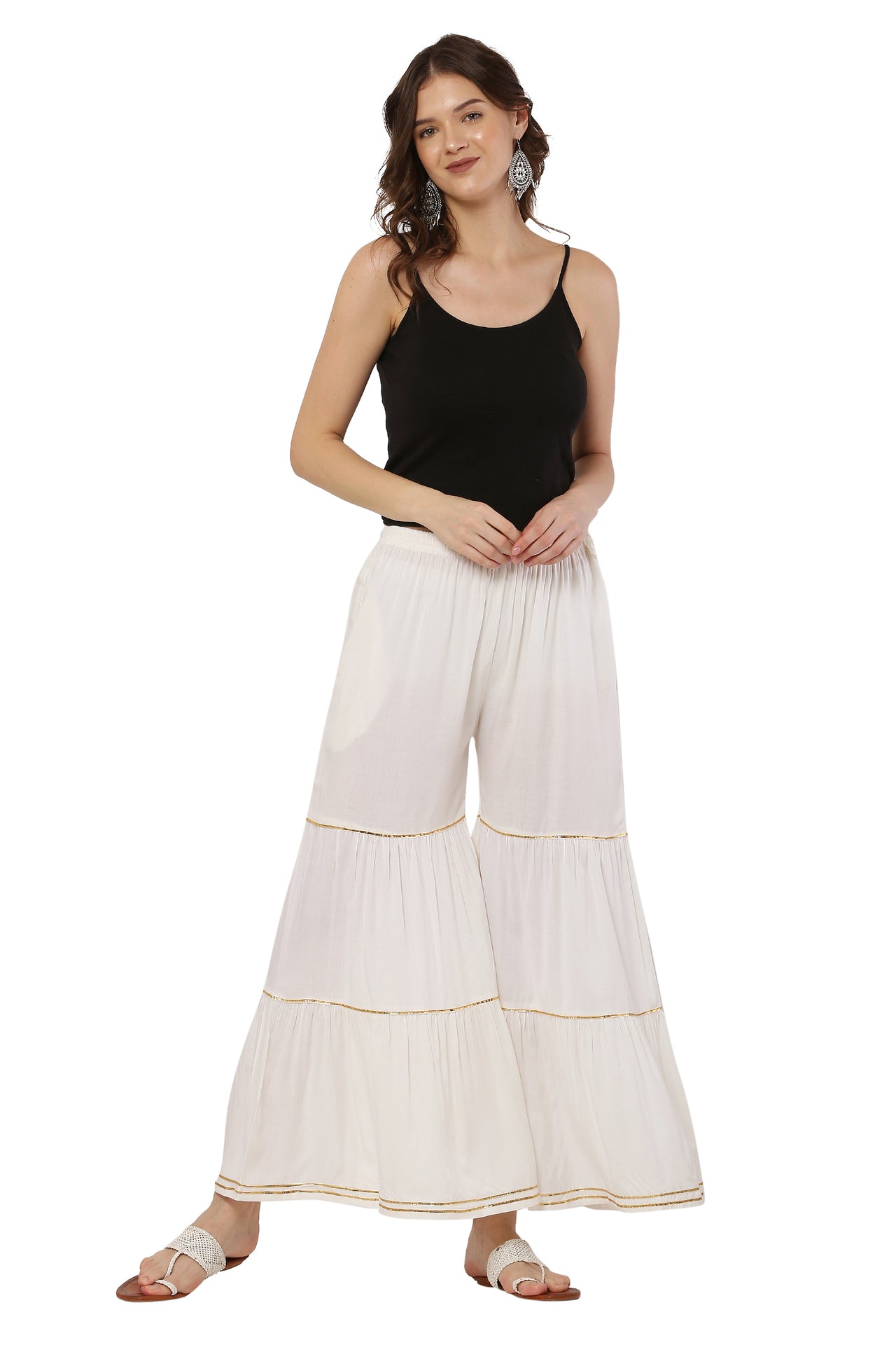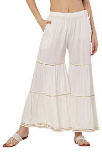 PAVONINE Off White Color 3-Panels Golden Gota Flared Sharara For Women - Free Size