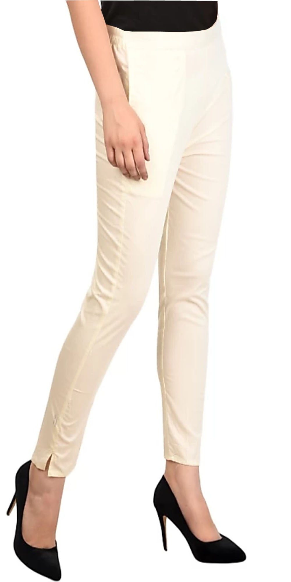 PAVONINE Off White Color Stretchable Cotton Lycra Fabric Pencil Pant For WomenAdditional Information: Highlights: Stretchable, Two Side Pocket...