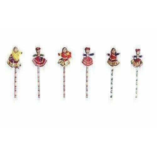 A beautiful piece of rajasthani culture and art. These beautiful puppets are made from gota work cloths and cotton fillings. The faces are shaped out of glass balls and male symbolises traditional snake charmers. A unique traditional product to place in your room and most useful for home decor. These puppets comes in a pair of male and female only which is symbol of love. Note : The puppets will come in different random colors as its made from scrap clothes so puppets set colors might be different from the photo listed in this product.