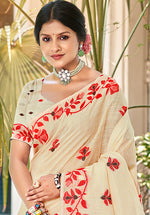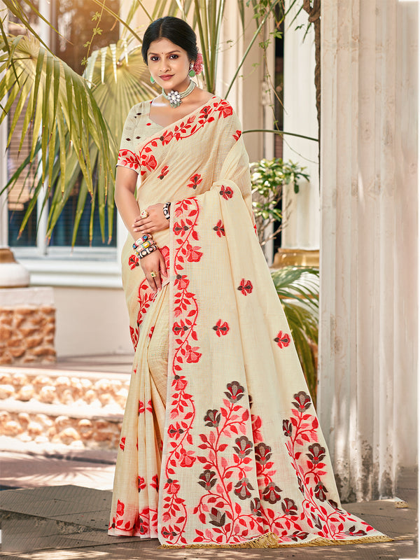 Sangam Prints Cream  Linen Woven Work Traditional Saree