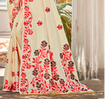 Sangam Prints Cream  Linen Woven Work Traditional Saree - Free Size