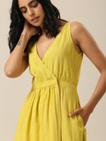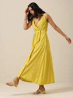 trueBrowns Lime Slub Texture Sleeveless Wrap Dress