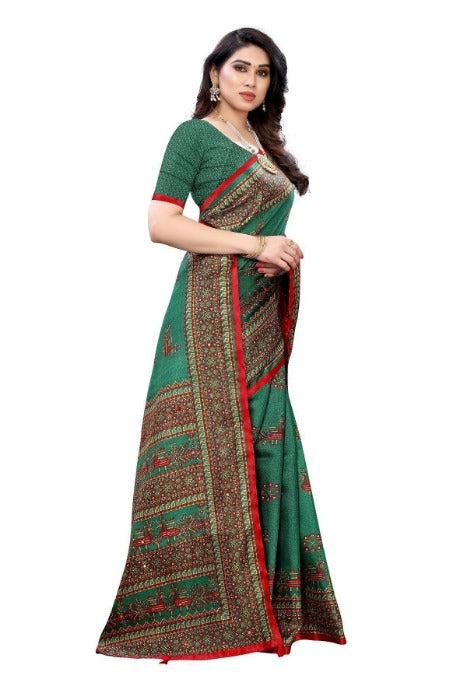 Vamika Green Mirror Work With Jhalar Khadi Silk Saree (AASHI GREEN) Specifications:
