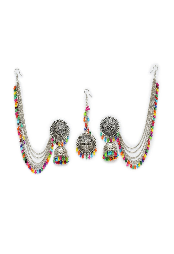 Mominos Fashion Johar Kamal Bahubali Multi Beads Earrings With Tikka
