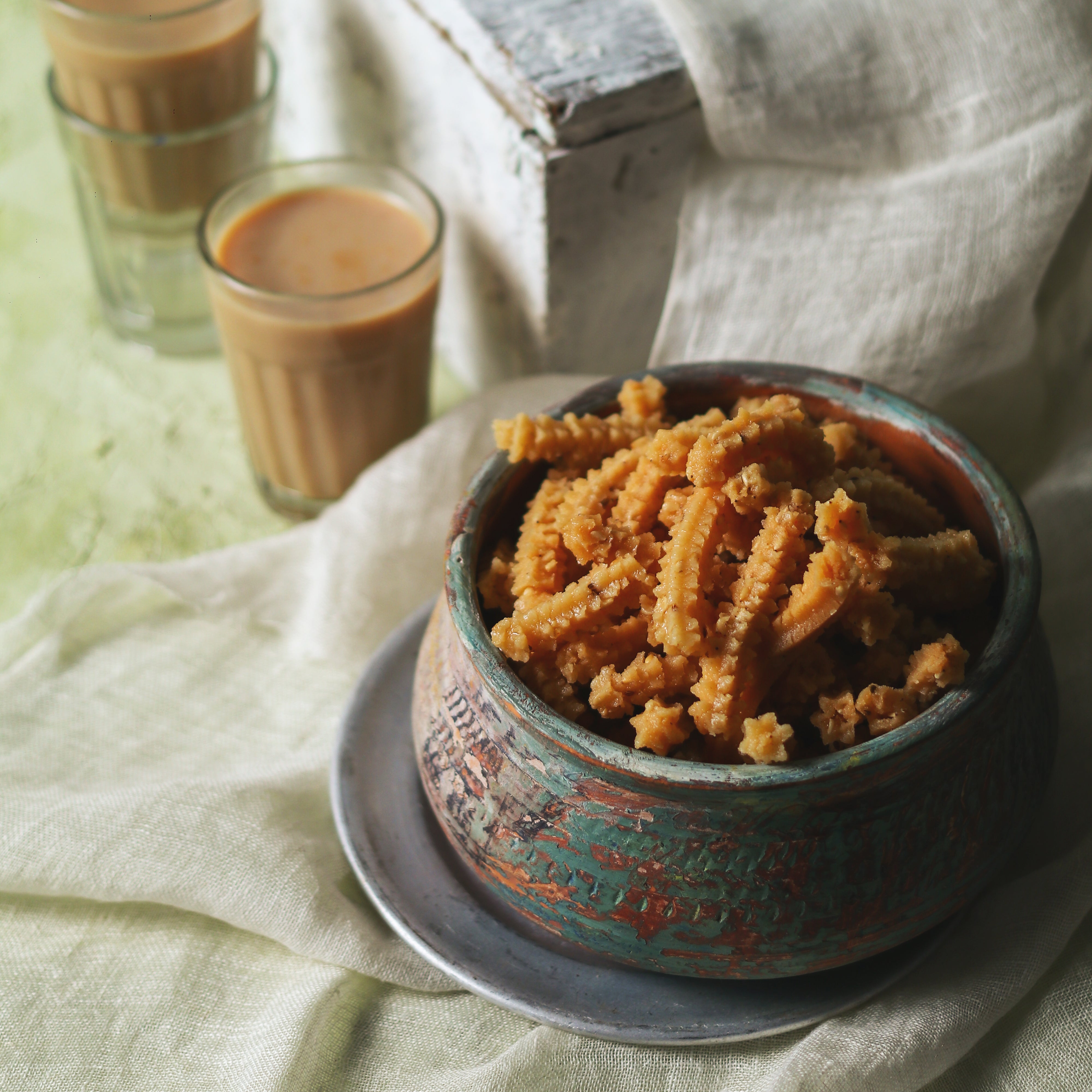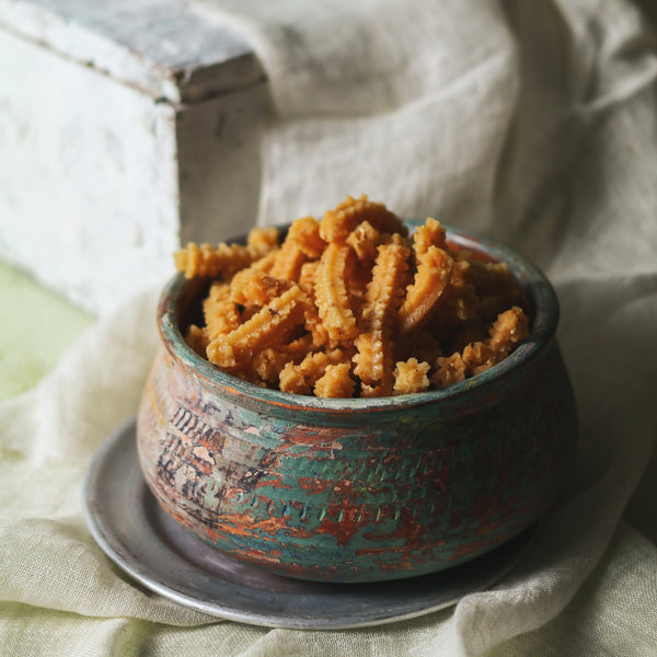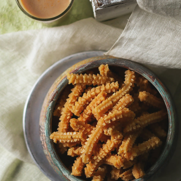 Almond House MurukuluCrunch into Murukulu, a South Indian favorite made from rice flour and seasoned with sesame and cumin seeds, ideal for those w...