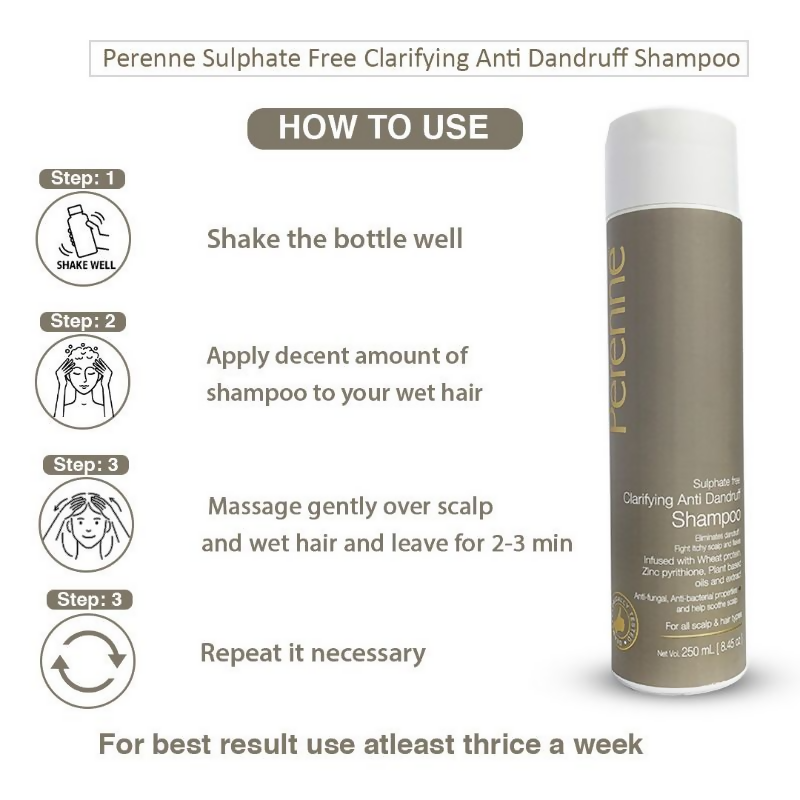 Perenne Sulphate Free Clarifying Anti Dandruff Shampoo About the product:Perenne Clarifying Antidandruff shampoo is gentle, mild and clinically pro...