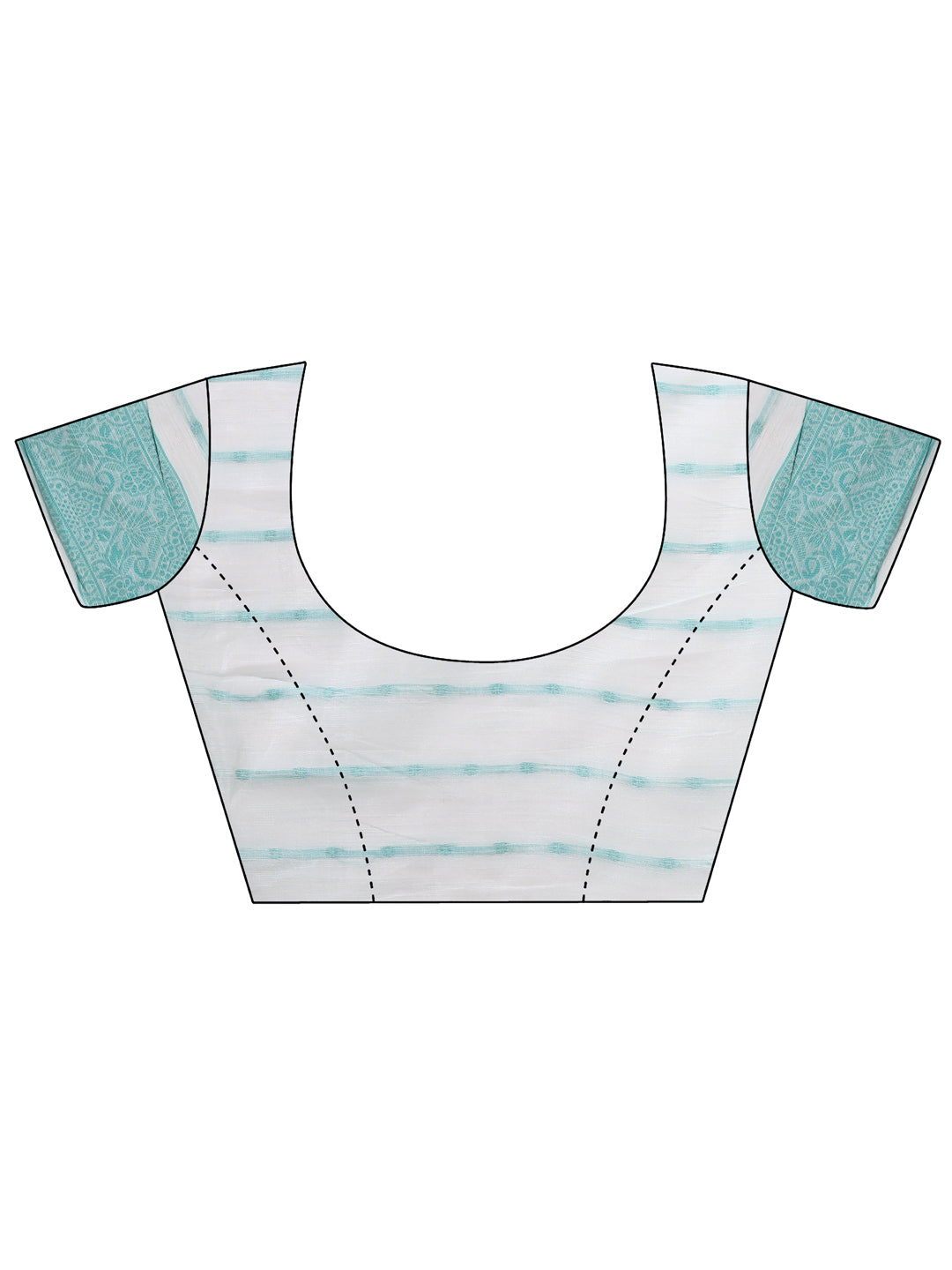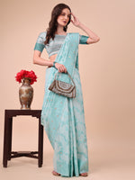 Astita Beige & Sky Blue Banarasi Cotton Saree with Floral Zari Work and Traditional Pallu - Elegant Ethnic Wear for Festivals & Ceremonies - Default Title
