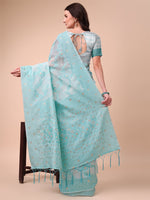 Astita Beige & Sky Blue Banarasi Cotton Saree with Floral Zari Work and Traditional Pallu - Elegant Ethnic Wear for Festivals & Ceremonies