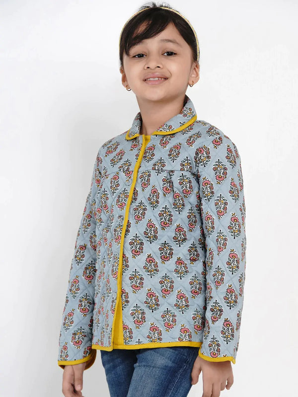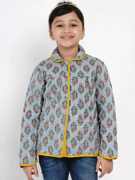 NOZ2TOZ Grey Printed Tailored Jacket Top For Girls - Distacart