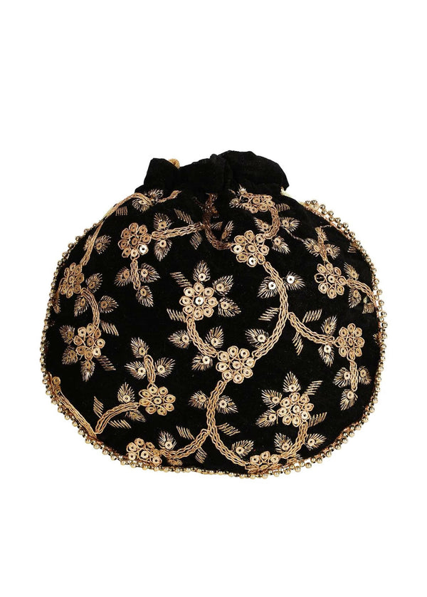 Joban Fashion Embroidered Potli Clutch - BlackAbout the Product: No. of Components: 1 Dimensions : 9 in x 8.5 in Fabric: Synthetic Color : Blac...