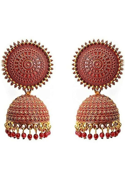 Mominos Fashion Joharkamal Gold-Polished Meenakari Jhumkas For Women & Girls (Red) Style/Collection: Oxidised Product Type: Jhumkas Metal Used:...