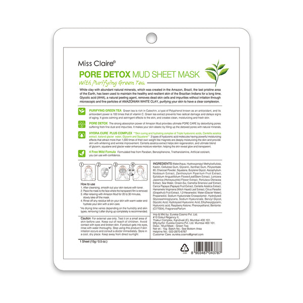 Miss Claire Pore Detox Mud Sheet Mask With Purifying Green Tea