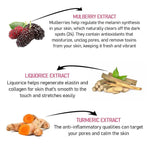 • Mulberry extract, Liquorice extract, Turmeric Extract, and More
