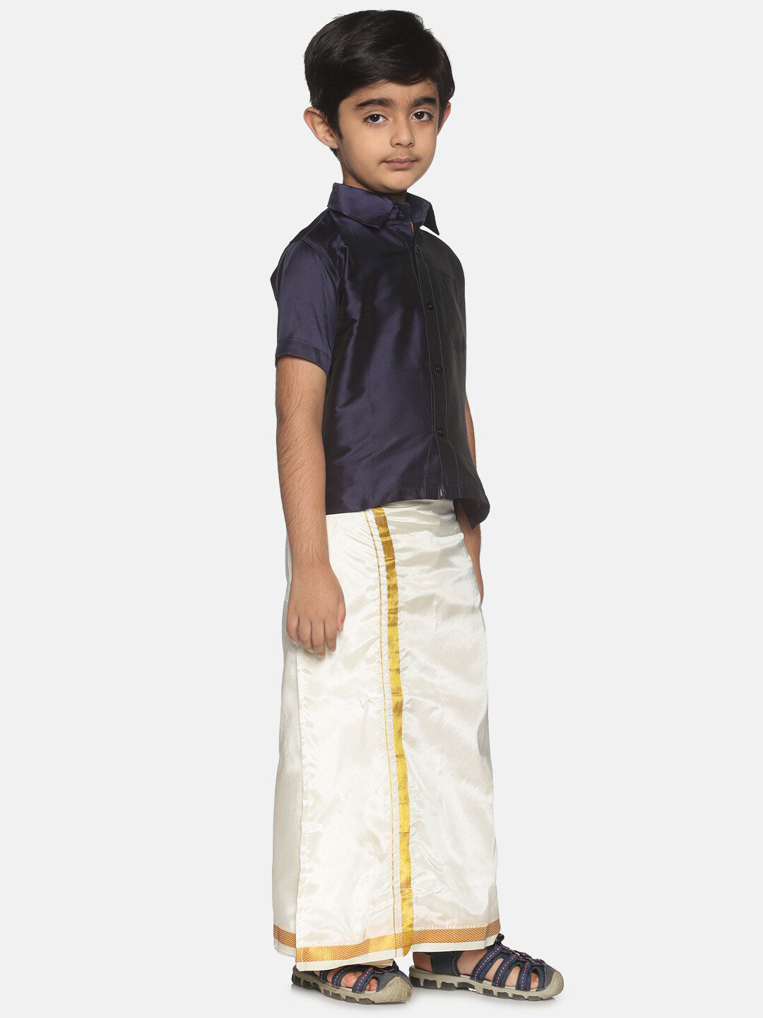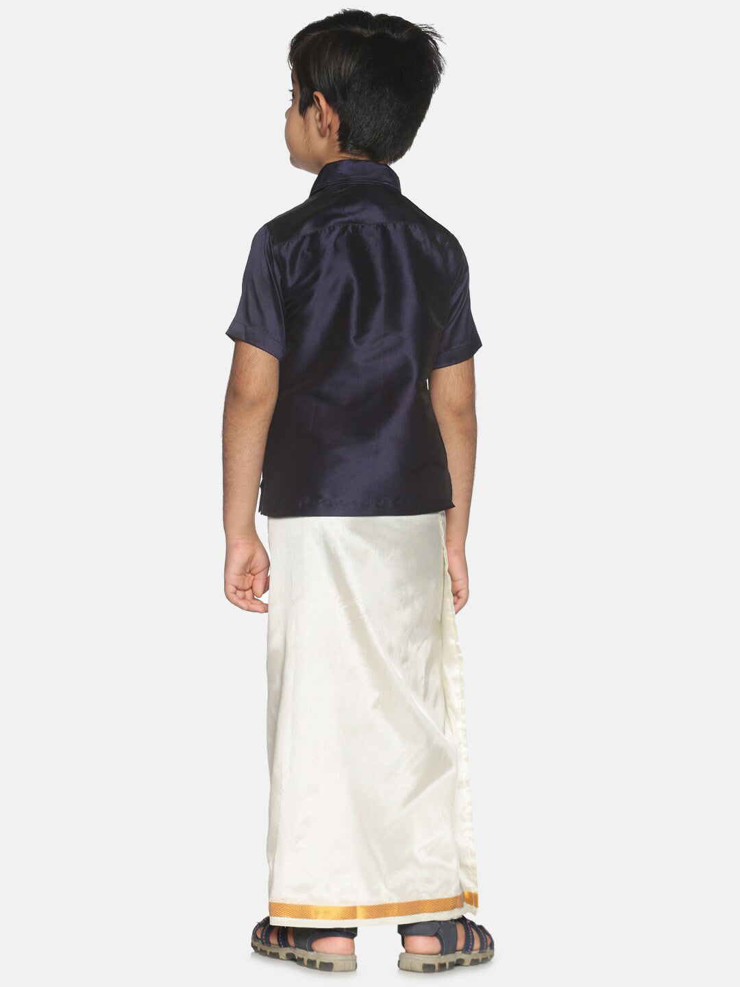 Sethukrishna Boys Navy Blue & White Shirt with Dhoti Set