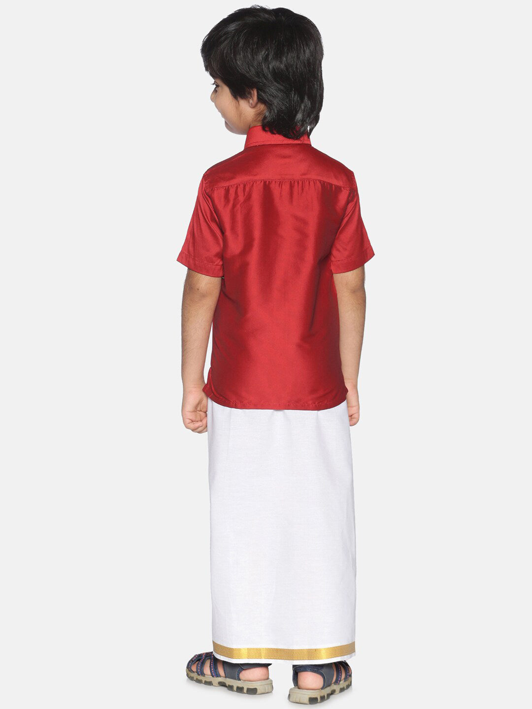 Sethukrishna Boys Red & White Shirt With Veshti Set Product DetailsThe Co-Ord Set consists of a shirt and a readymade dhoti.The shirt featur...
