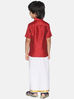 Sethukrishna Boys Red & White Shirt With Veshti Set