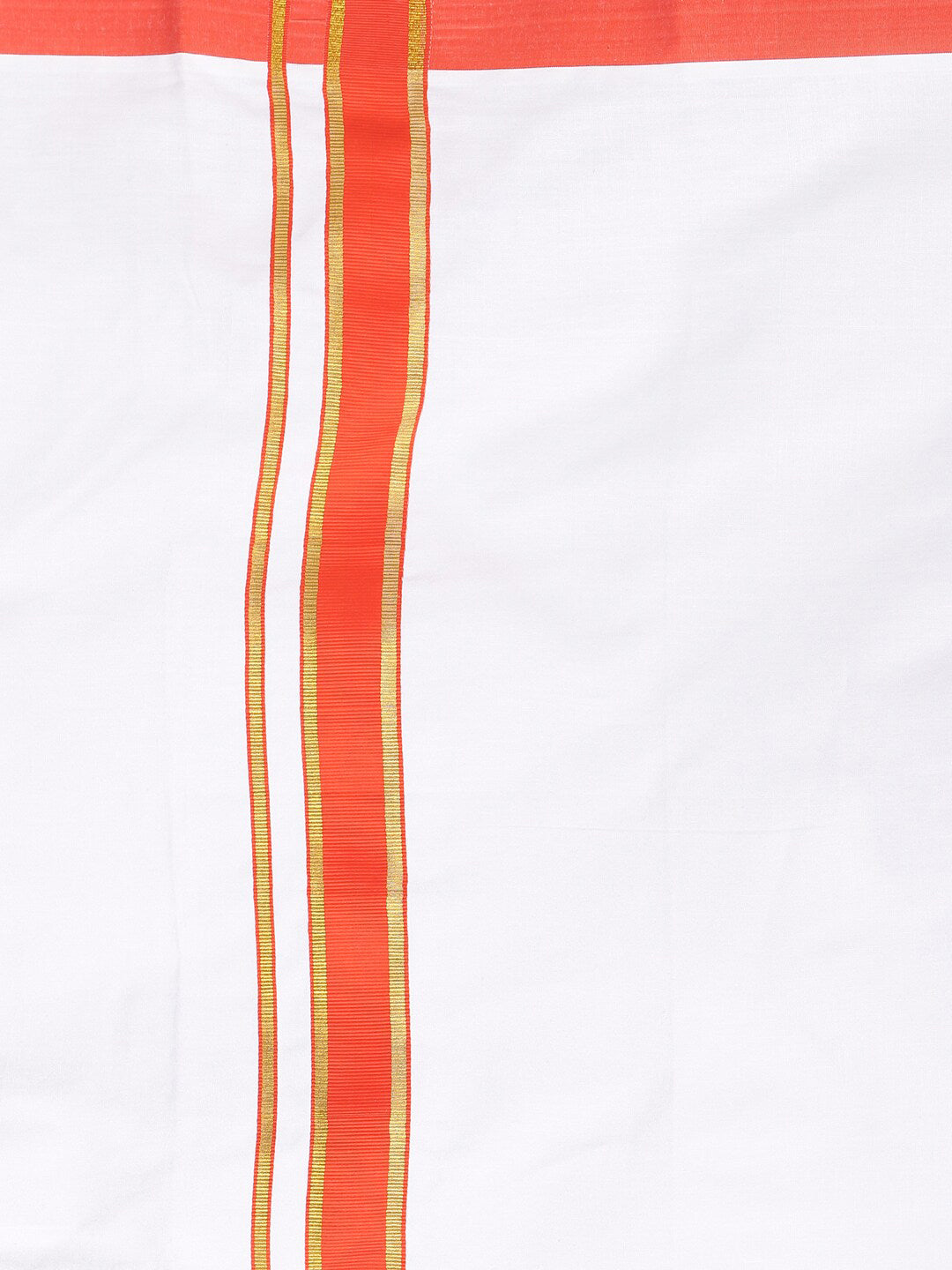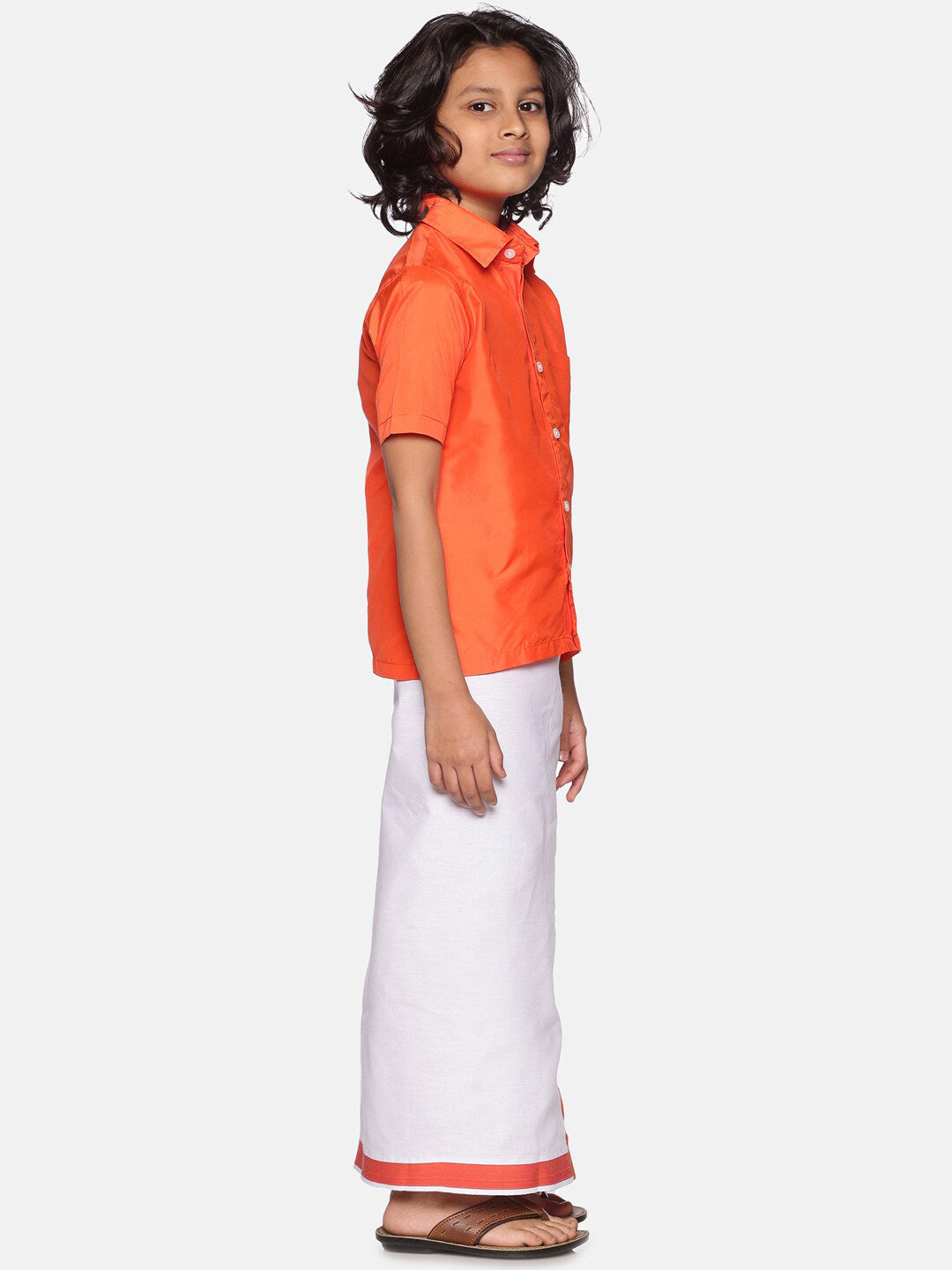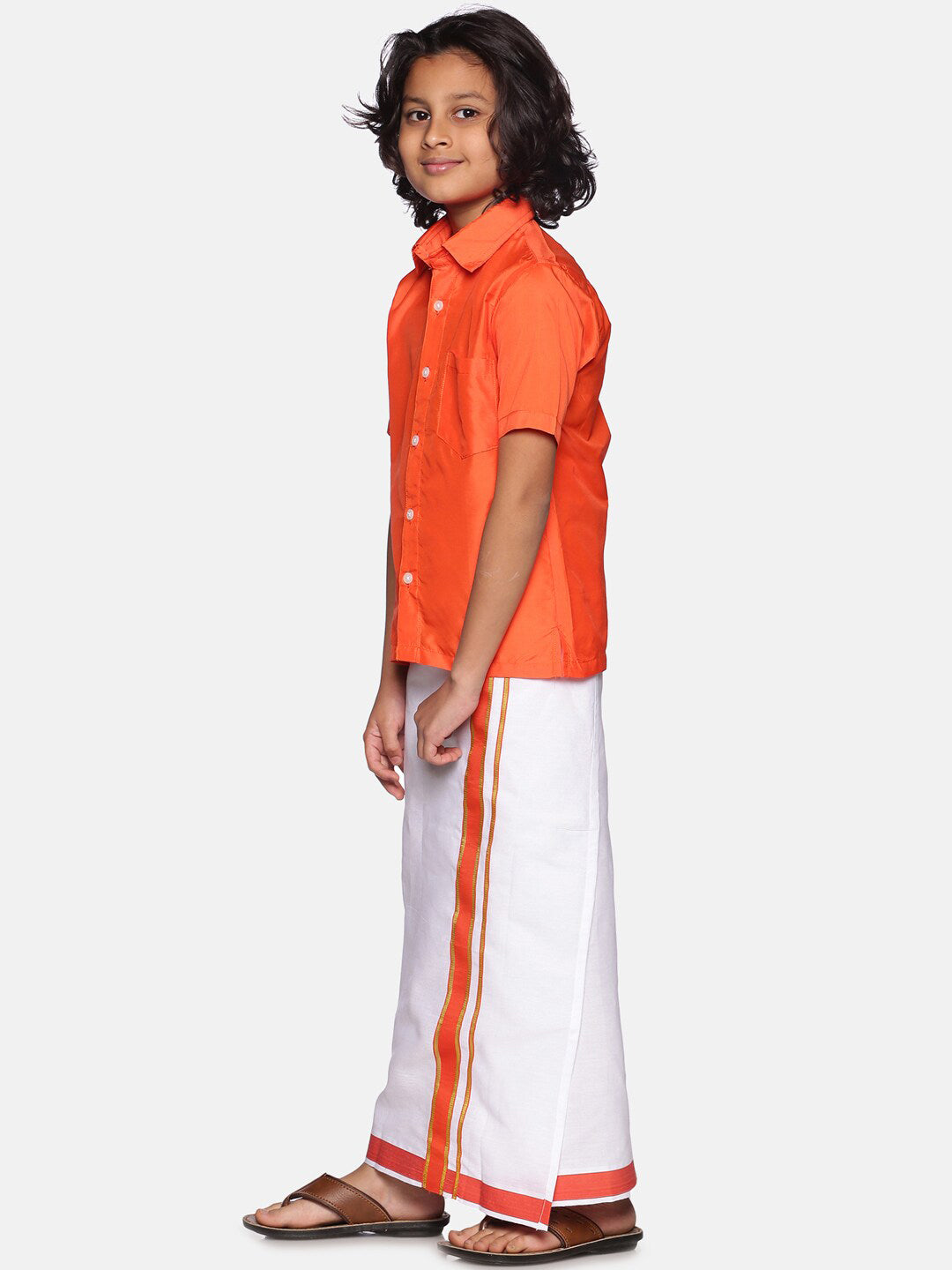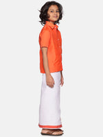 Sethukrishna Orange & White Solid Shirt with Dhoti Set For Boys