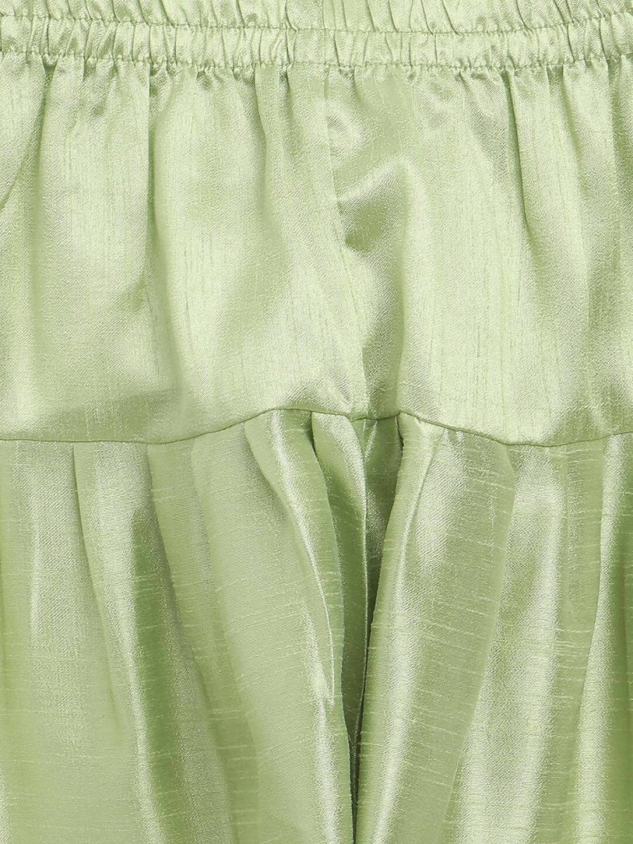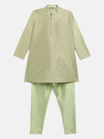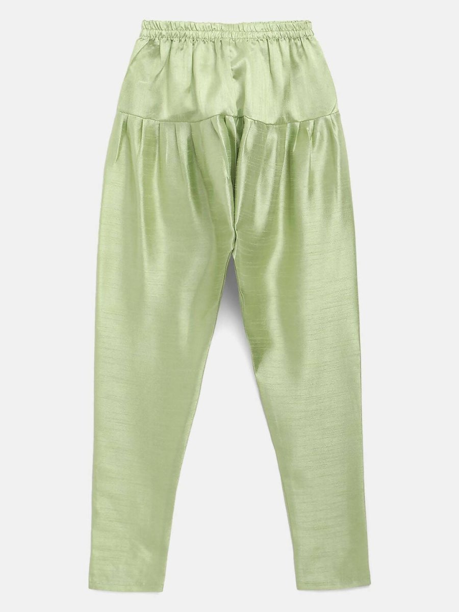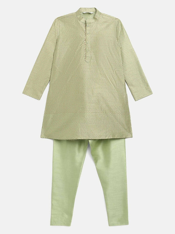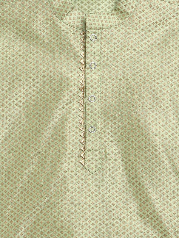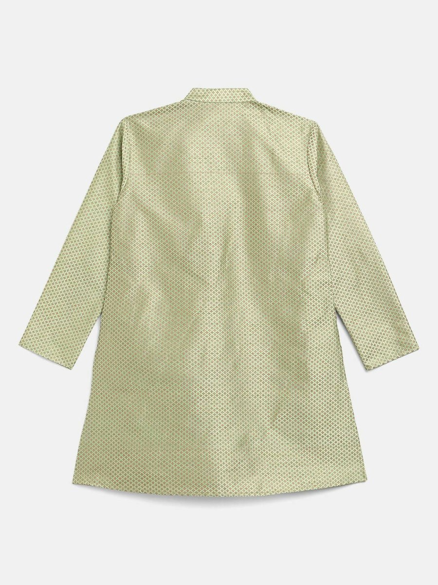 Ahalyaa Green Poly Silk Gold Print Kids Kurta Churidar Set For Boys