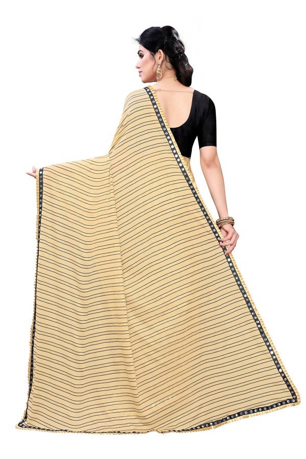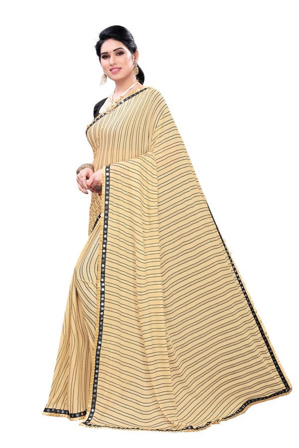 Vamika Cream Malai Silk Printed Saree (Zigzag Chiku)