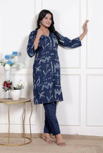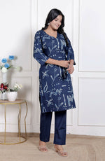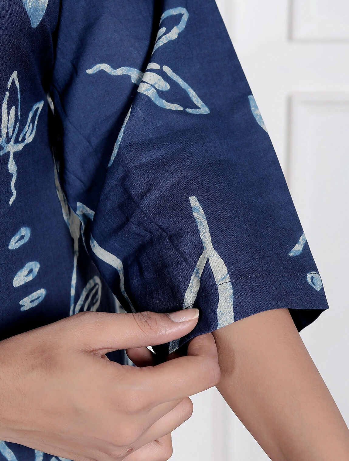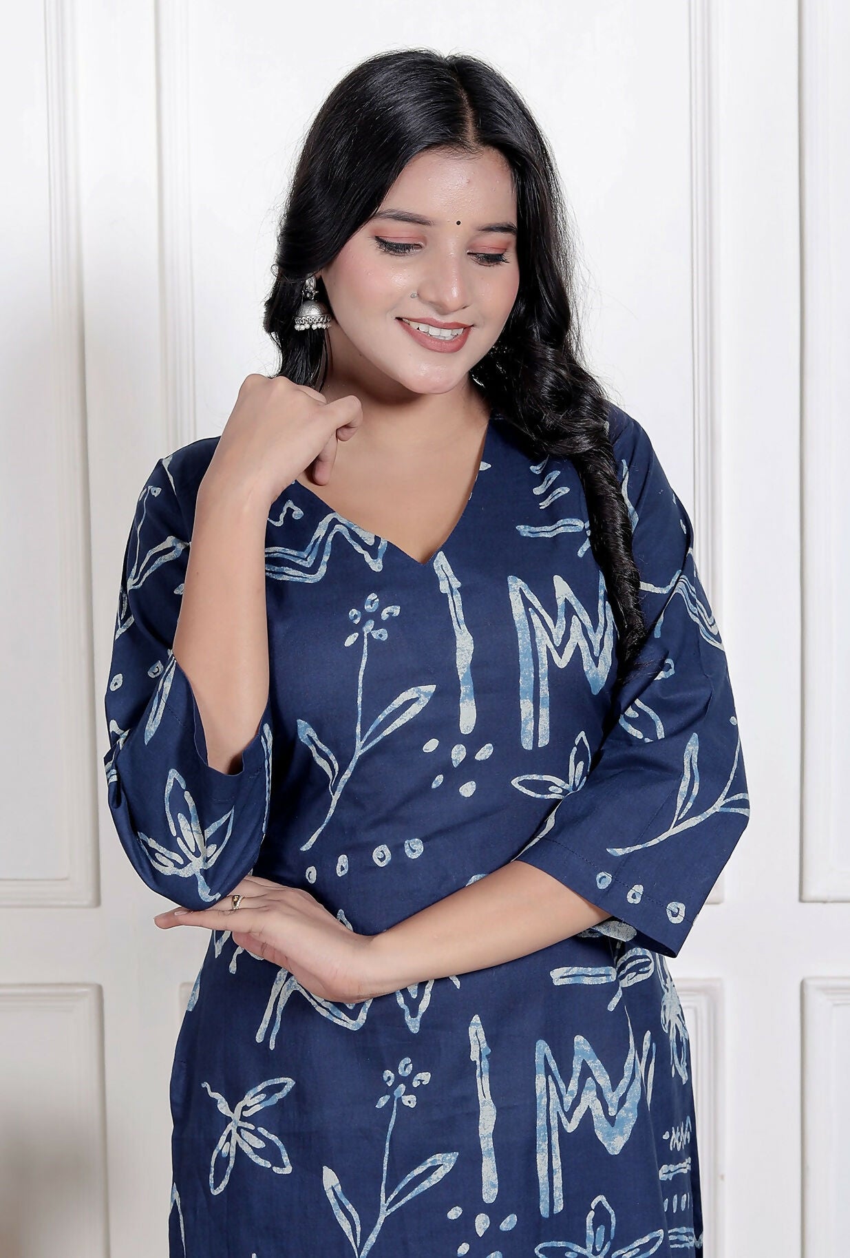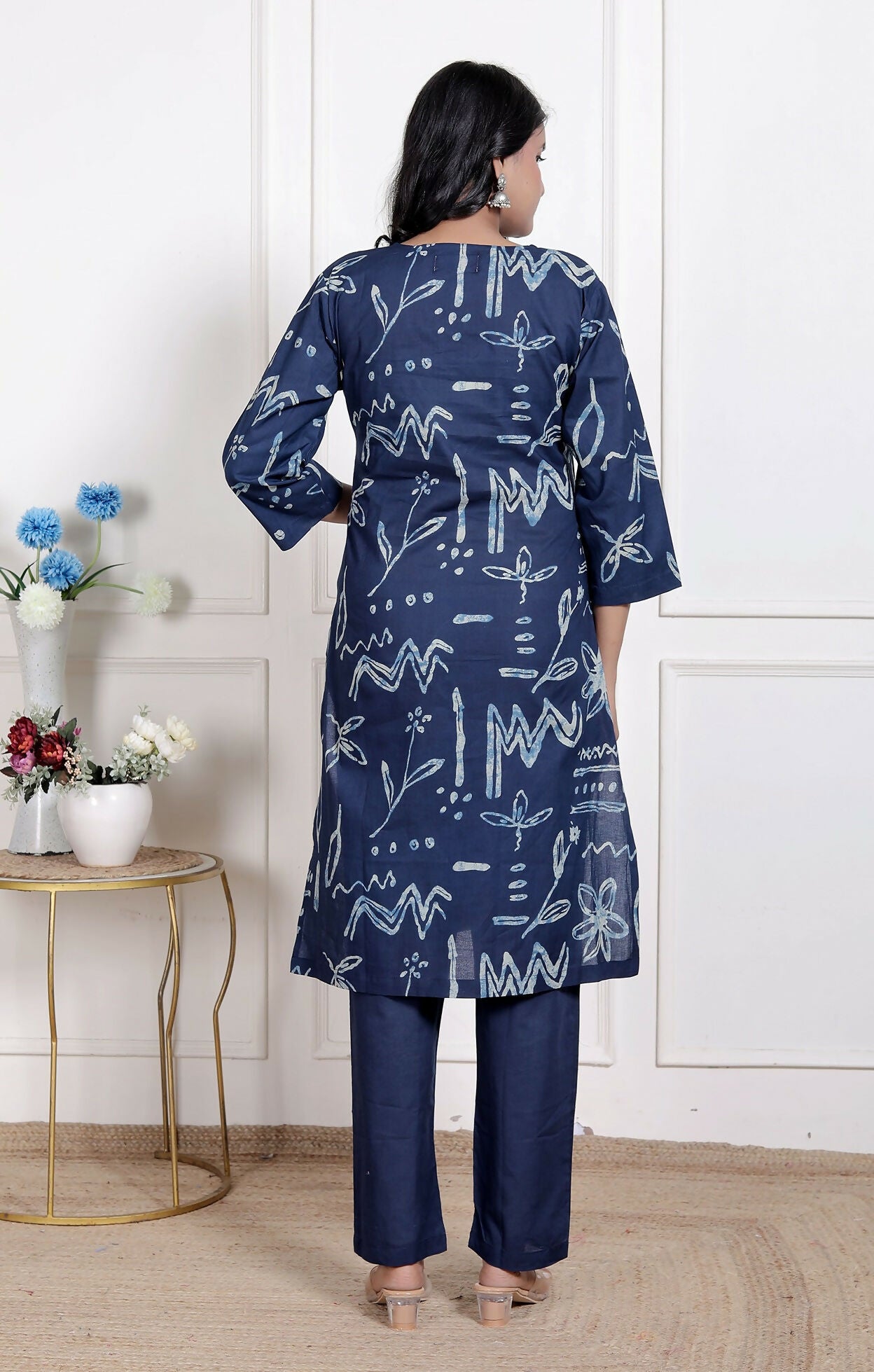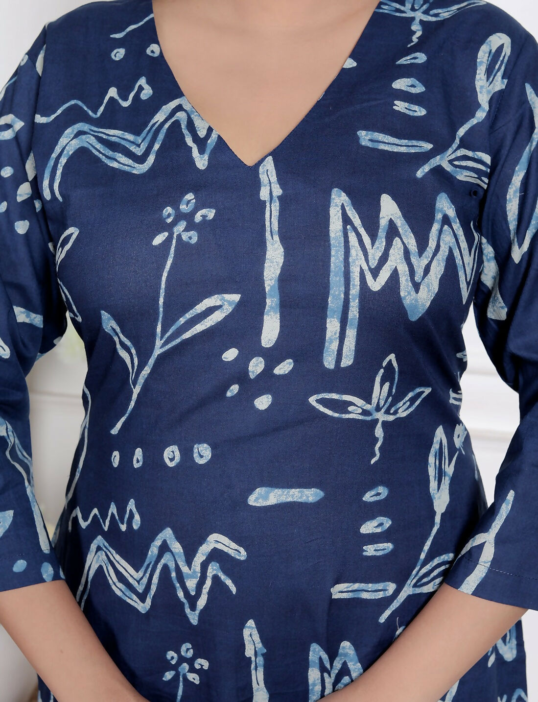 Miravan Womens Abstract Blue Printed Cotton Blue Co-Ord Set