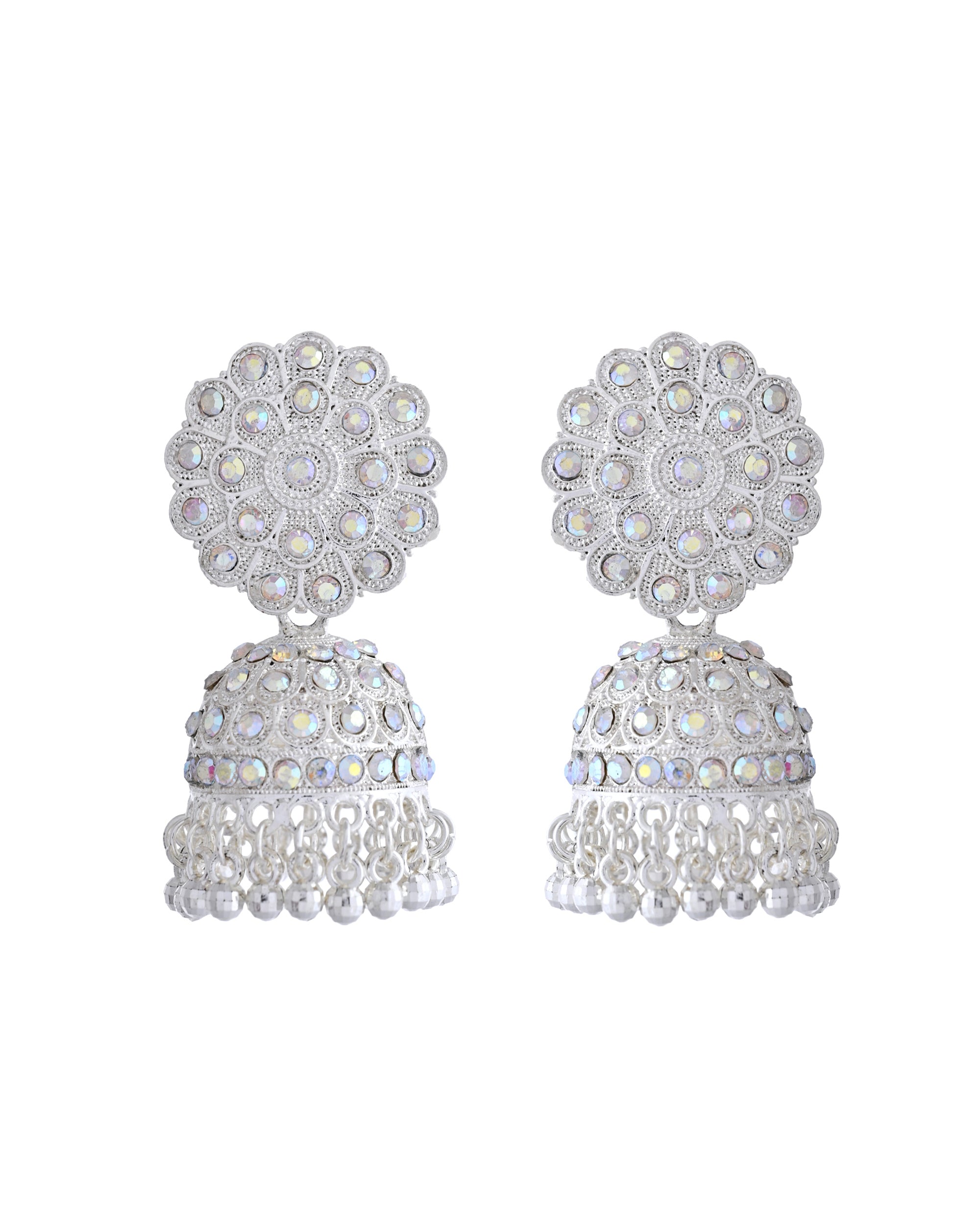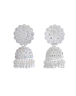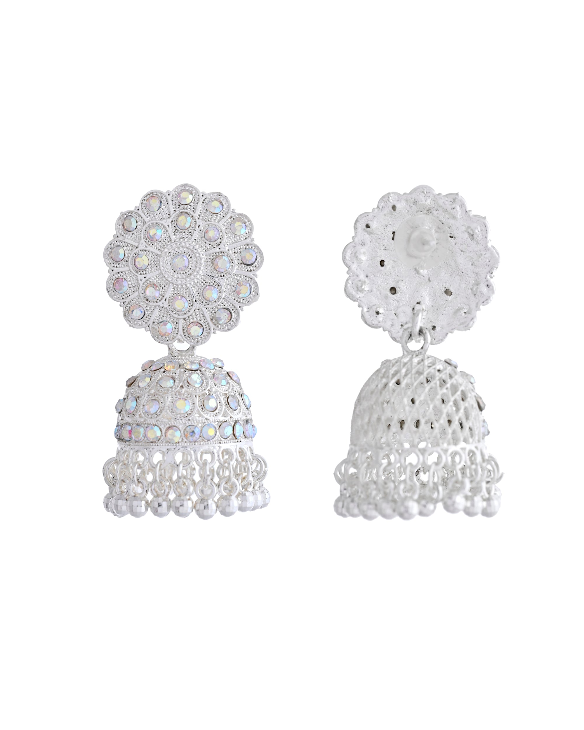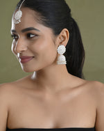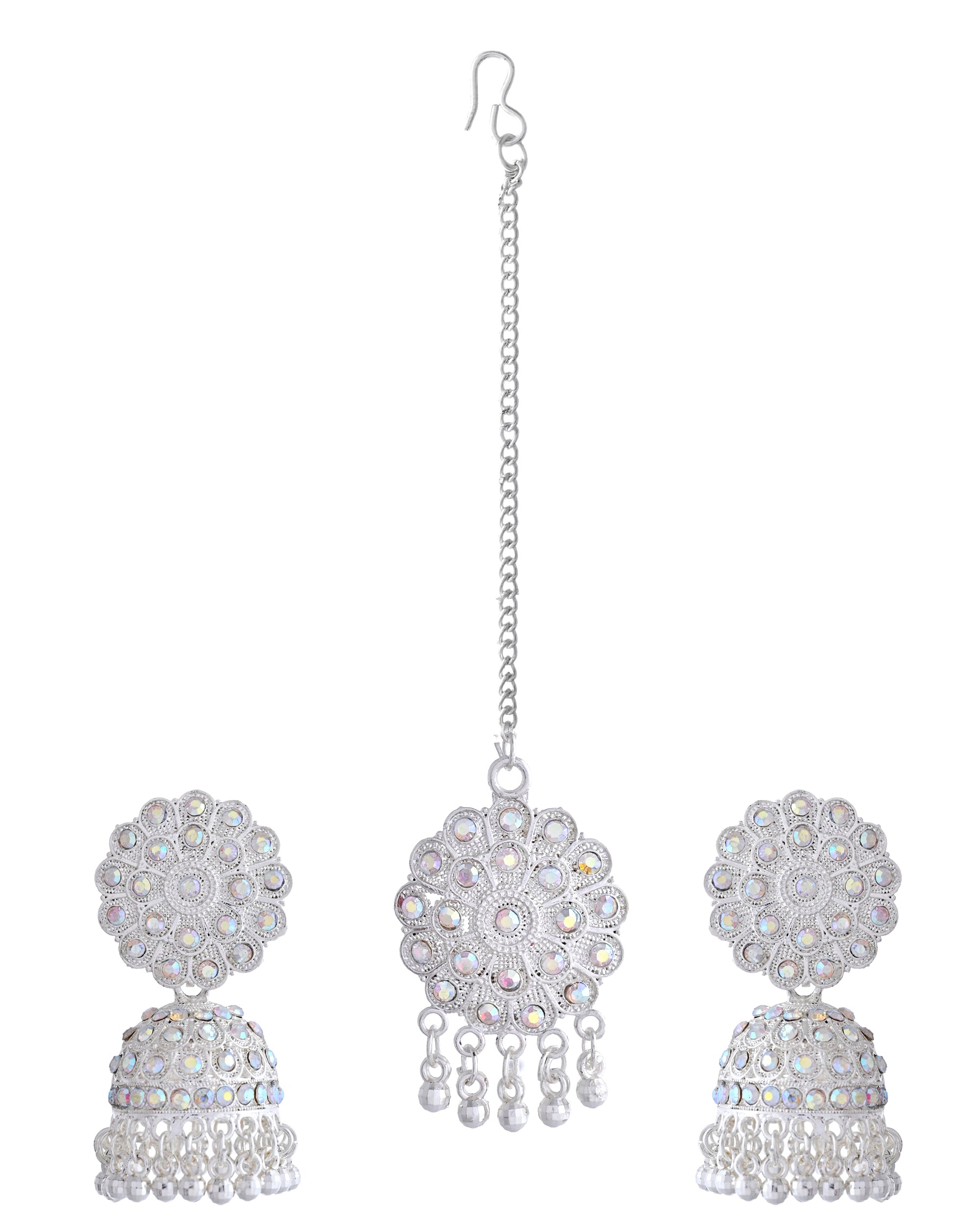 VOJ White Stone Studded Jhumkar Earrings With Maang Tikka