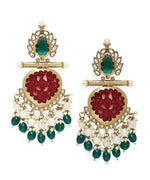Jewel City Elegant Kundan-Inspired Chandelier Earrings with Red and Green Gemstones