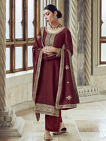 Myra Maroon Premium Silk Embroidered Pant Style Suit