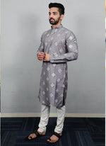Prazu Fashion Grey Silk Copper Sequence Work Kurta