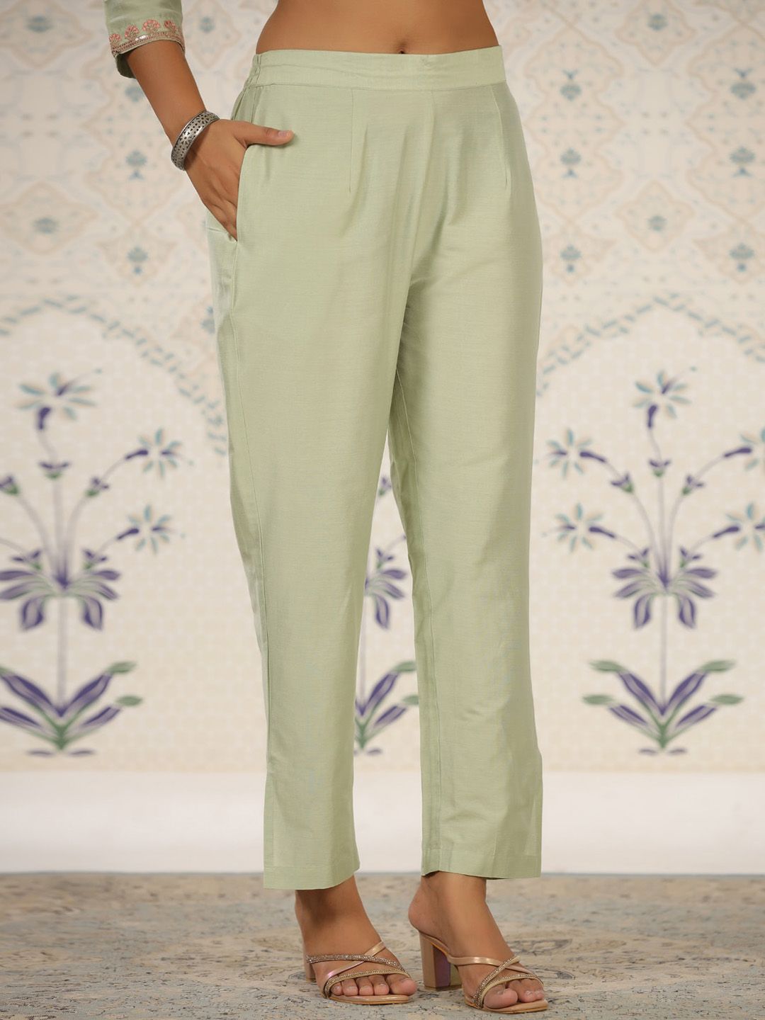 Ode by House of Pataudi Ethnic Motifs Embroidered Regular Kurta with Trousers & Dupatta Product Details Lime green embroidered Kurta with Tr...