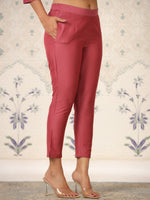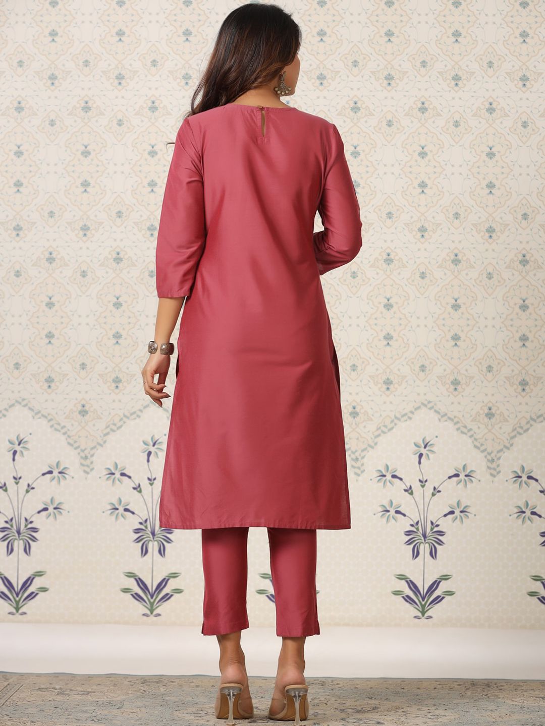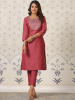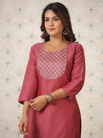 Ode by House of Pataudi Ethnic Motifs Yoke Design Thread Work Kurta With Trouser Product Details Pink and silver toned yoke design kurta with tr...