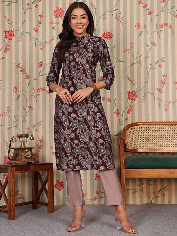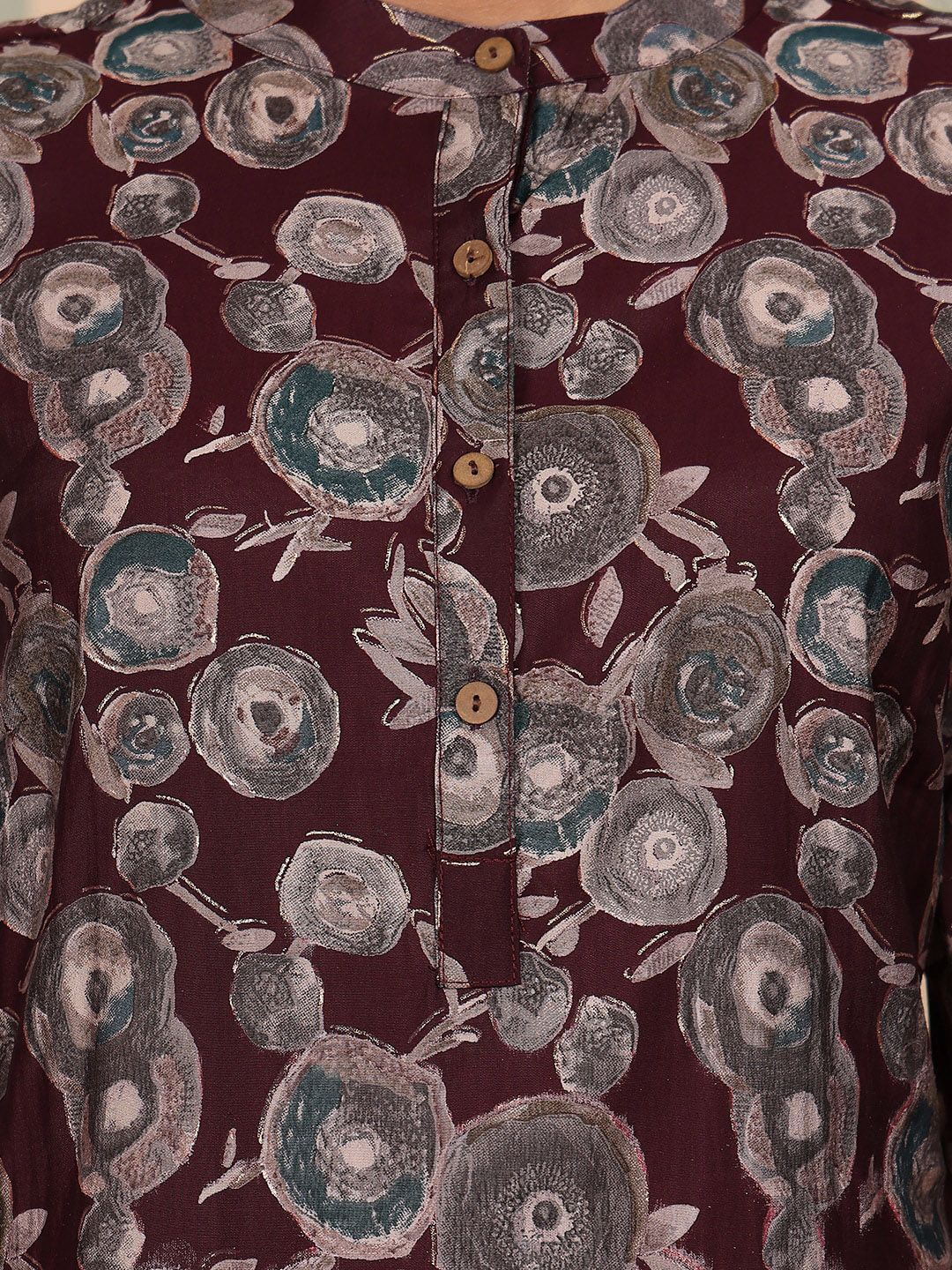Ode by House of Pataudi Floral Printed Regular Chanderi Silk Kurta With Trouser Product Details Brown printed Kurta with TrouserKurta design: ...