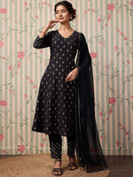 Ode by House of Pataudi Floral Printed Regular Kurta with Trousers & With Dupatta Product Details Black printed Kurta with Trousers with dup...