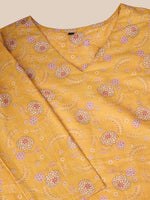 Ode by House of Pataudi Floral Printed Regular Pure Cotton Kurta with Trousers & Dupatta Product Details Mustard yellow printed Kurta with T...