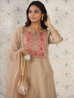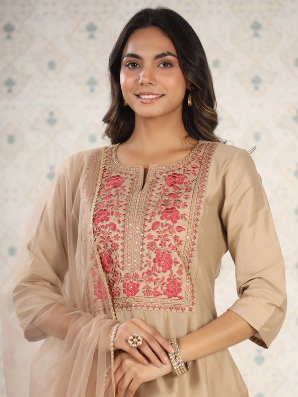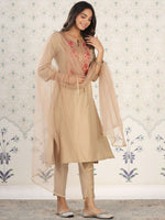 Cream-coloured & pink yoke design Kurta with Trousers with dupatta