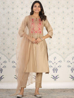 Ode by House of Pataudi Floral Yoke Design Sequinned Kurta with Trousers & Dupatta Product Details Cream-coloured & pink yoke design Kur...