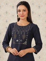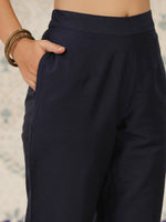 Ode by House of Pataudi Geometric Yoke Design Regular Thread Work Kurta With Trousers Product Details Navy blue embroidered Kurta with TrousersK...