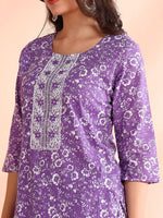Ode by House of Pataudi Printed Mirror Work Pure Cotton Kurta With Trouser & Dupatta Product Details Purple & white printed Kurta with T...