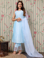 Ode by House of Pataudi Regular Kurta with Trousers Product Details Blue solid Kurta with Trousers & DupattaKurta design: Solid Straight s...