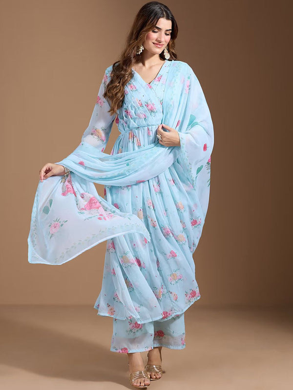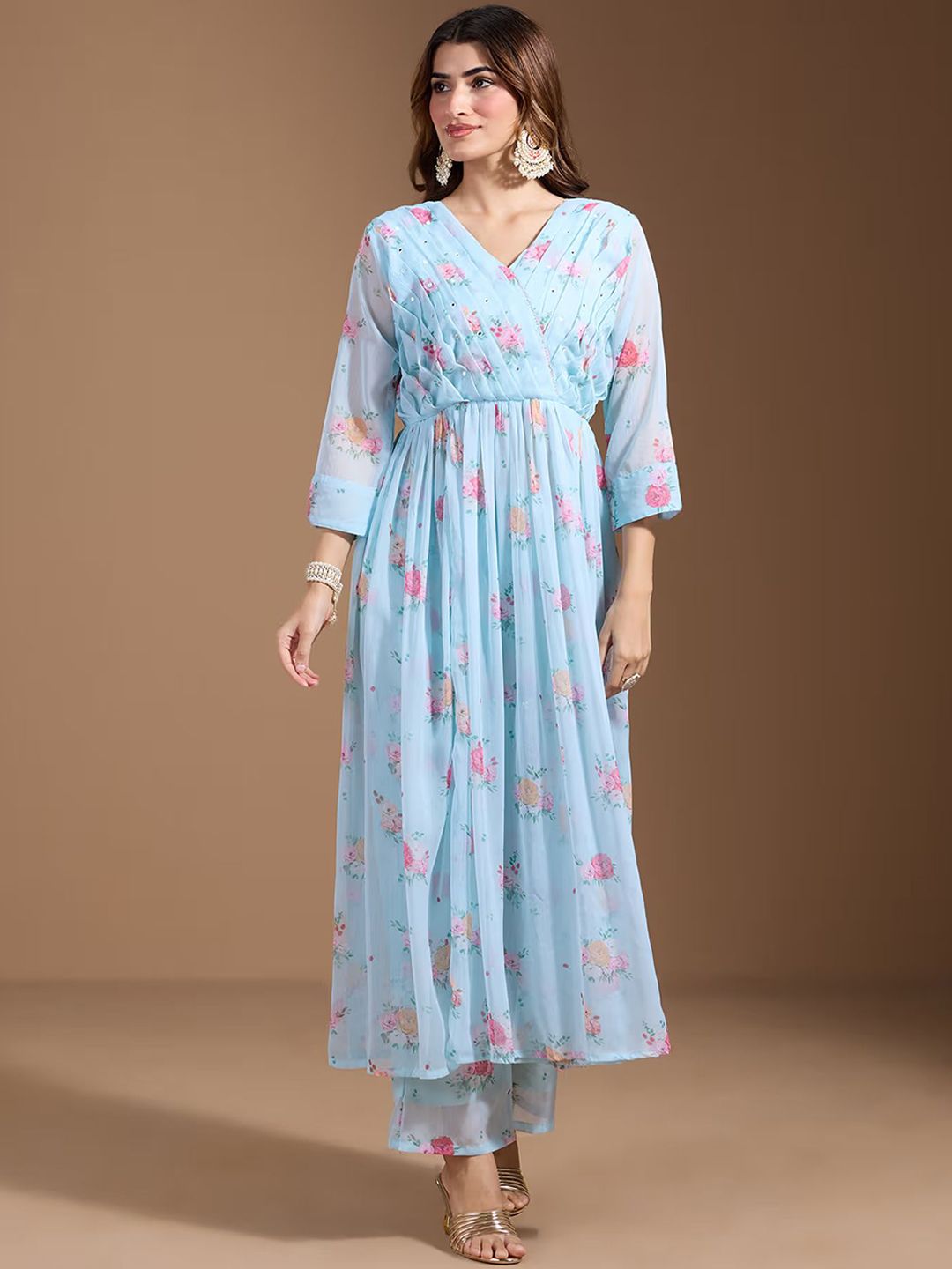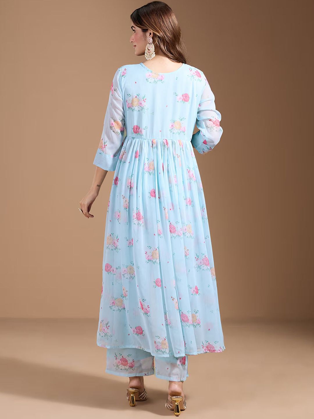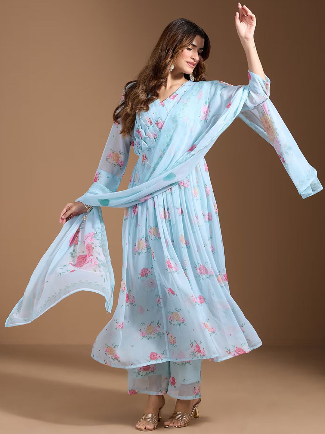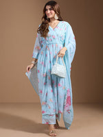 Ode by House of Pataudi Women Floral Printed Regular Kurta with Trousers & With Dupatta Product Details Blue printed Kurta with Trousers wit...