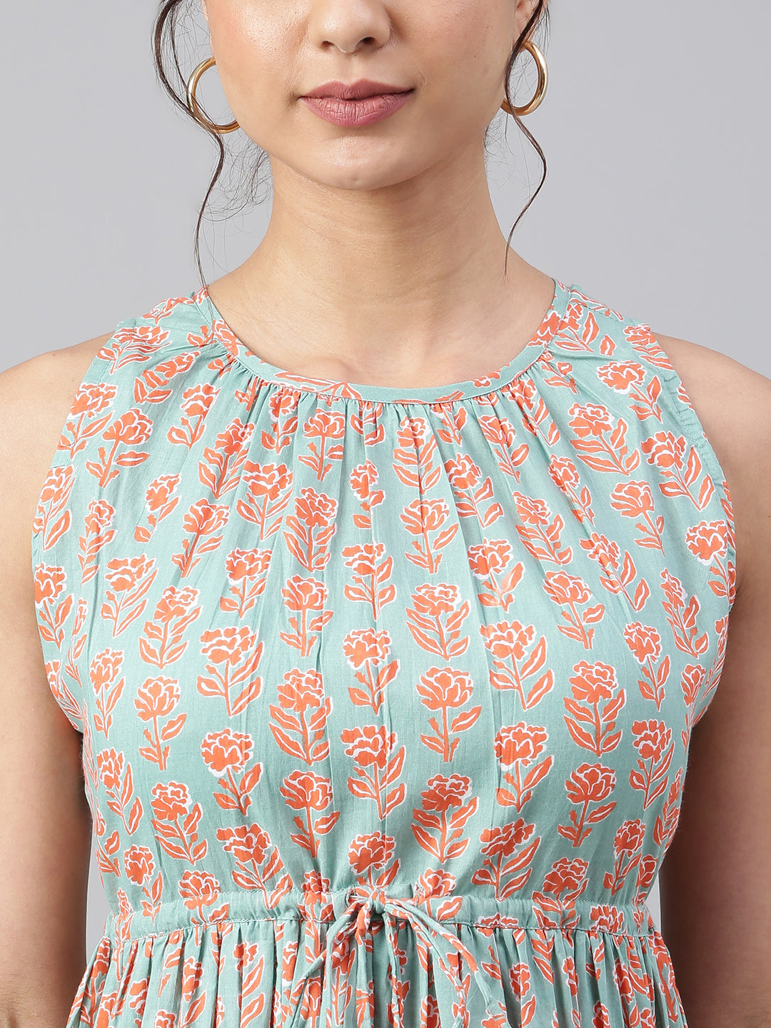 Janasya Women's Mint Green Cotton Floral Printed Tiered Western Dress Color: Mint Green Fabric: Cotton Pattern: Floral Printed Occasion: Ca...