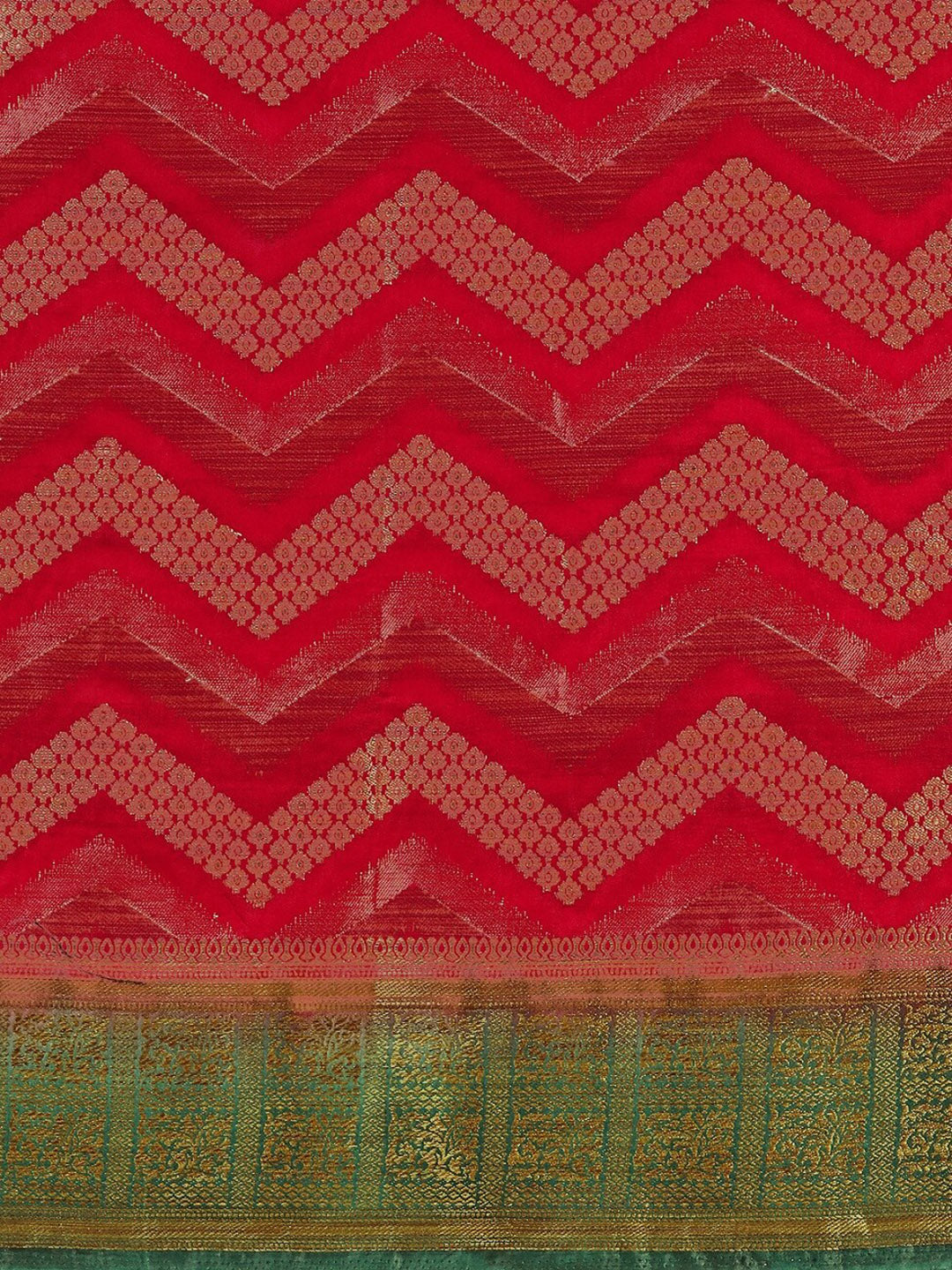 Kalini Ethnic Motifs Woven Design Zari Detail Kanjeevaram Saree Product Details Design Details Red and copper-toned kanjeevaram saree Ethnic m...