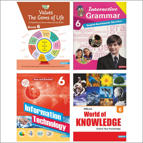 • Sheth Publishing House brings combo books of "Nigam Information Technology, Interactive Grammar, Nigam World of Knowledge & Value Edition - Gems of Life"Information Technology is the scientific and practical approach to computation and this series has been created using latest technology, which includes Windows 7 Operating System & Microsoft Office 2007.The Interactive Grammar Series from Senior K.G. to Standard IX will enable the students to make use of the grammatical terms in a proper usage and help them to speak and write simple and correct English. This series contains a lot of puzzles and exercises in different forms to make the subject interesting and educative.Nigam World Knowledge 1 to 8 Book series will add to their existing knowledge bank. General Knowledge is an important aspect of everyone's life today. It widens the state of mind of the child. A child should be able to compete in today's unending informative and competitive world.‘Gift of Life' is a handbook on Value Education. The book provides opportunities to children to make an appraisal of themselves and to find that there is goodness in them, which needed only a little help from parents, teachers, elders, They must learn certain values which give them the sense of right and wrong, good and bad, what and when to practice, etc. This book is based on the ten special values prescribed by the Education Board of Maharashtra.