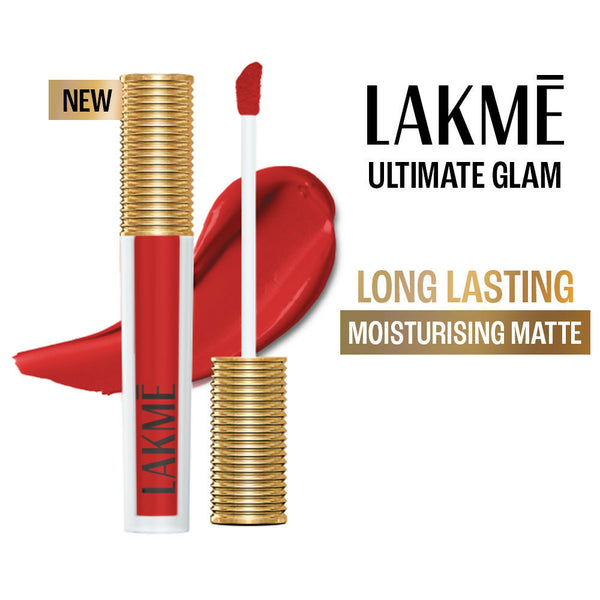 • Turn up the glam with Lakme Ultimate Glam Liquid Lipstick - your go-to for bold, high-impact lips that feel as good as they look. This moisturising matte formula glides on effortlessly, delivering a smooth, lightweight texture that keeps lips soft and hydrated.Experience intense color payoff in just one swipe. The high-pigment formula offers vibrant, rich color that stays fresh and flawless. It’s designed to blur lip lines, giving a soft-focus finish that enhances your pout. Plus, its non-sticky texture ensures comfortable wear all day long.Whether you're heading to work, brunch, or a night out, this lipstick is built to last. Its long-lasting, waterproof formula resists smudging and fading, so your glam stays intact from morning to midnight.Choose from 20 stunning shades specially curated for Indian skin tones – from subtle nudes to bold reds, there's a shade for every mood and moment.Lakme Ultimate Glam isn’t just makeup , it’s a statement. A swipe of this lipstick is your daily dose of confidence, style, and self-expression.
