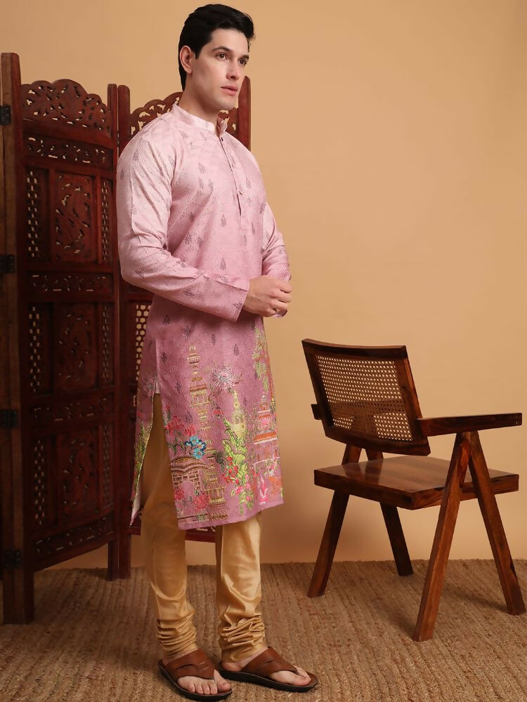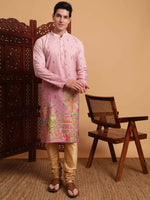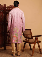Pink Cotton Printed Chikankari Embroidery Work Kurta - Mahotsav