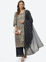 Biba Women Blue Ethnic Motifs Printed Kurta with Palazzos & With Dupatta - 3XL