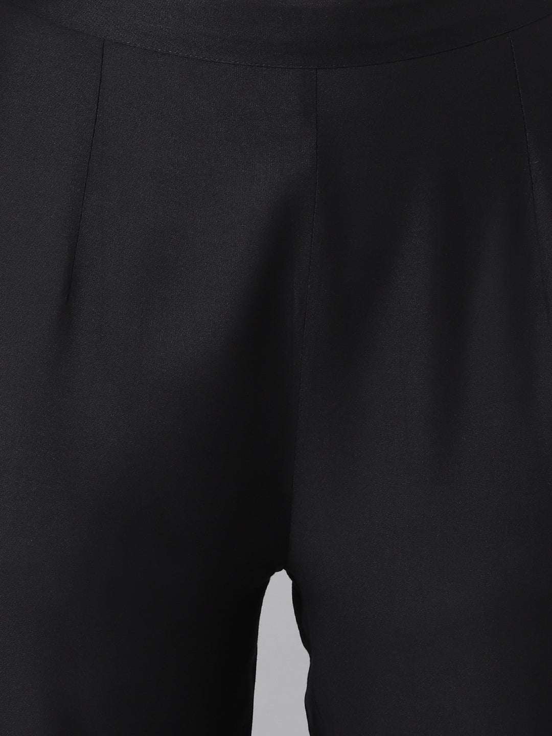 Black solid palazzos, has partially elasticated waistband, slip-on closure